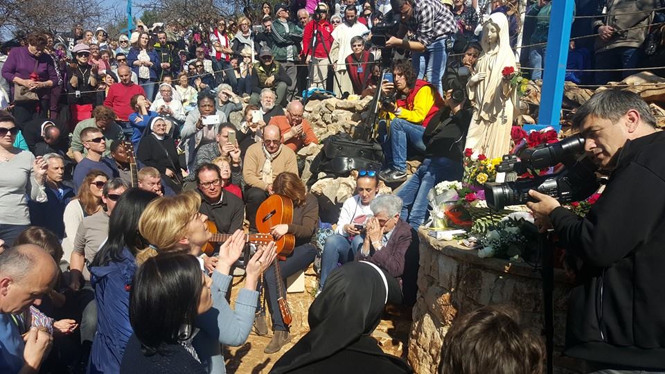 La veggente Mirjana Dragićević-Soldo ha avuto apparizioni giornaliere dal 24 giugno 1981 fino al 25 dicembre 1982. In occasione della sua ultima apparizione quotidiana, rivelandole il decimo segreto, la Vergine le rivelò che avrebbe avuto apparizioni annuali il 18 marzo e così è stato in tutti questi anni. Più di mille pellegrini si sono riuniti per la preghiera del rosario. L’apparizione è iniziata alle 13:50 ed è durata fino alle 13:56.
