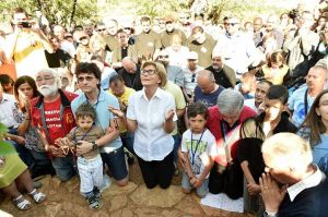 Rezamos el Rosario en diferentes idiomas, cantábamos, y juntos esperábamos el momento de la aparición. Con la llegada de Mirjana a la Cruz Azul, sabíamos que solo faltaba la llegada de aquella por la cual estábamos todos reunidos, y a la que esperábamos con amor y devoción. Aunque estaba yo atrás de la Cruz Azul y podía ver perfectamente a Mirjana desde arriba, no quise tomar foto alguna en el momento de la aparición, sino que deseaba unirme en oración a ella cuando estuviera la Santísima Virgen María presente. Solo deseaba ver la belleza del momento cuando su rostro se transformaba en éxtasis ante la llegada de Nuestra Señora. Yo sabía que en el momento que ella pusiera su mano en el corazón, para calmar su emoción, era la señal de que la Virgen estaba cerca. Así sucedió. Pocos momentos después, Mirjana alzó la mirada y sonrió llena de asombro, alegría y amor. Frente a ella, y junto a nosotros, estaba la Madre de Dios presente. Durante la aparición, hice mi oración profunda, aprovechando ese momento de gracia y de la presencia especial de la Santísima Virgen, teniendo en cuenta siempre lo que ella enseña al respecto. Desde el inicio de las apariciones, ella ha recalcado que ella está más presente durante la Santa Misa y la Adoración Eucarística que durante una aparición. La aparición es solo una gracia especial que Dios concede, pero que jamás superará en importancia a la Eucaristía, pues es durante la Misa que “mi Hijo se hace presente.”