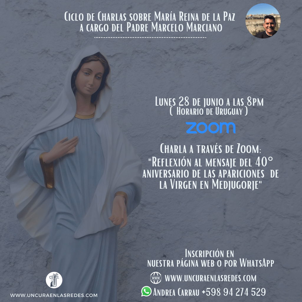 El próximo lunes 28 de junio comienza el Ciclo de charlas a través de Zoom sobre María Reina de la Paz a cargo del Padre Marcelo Marciano.