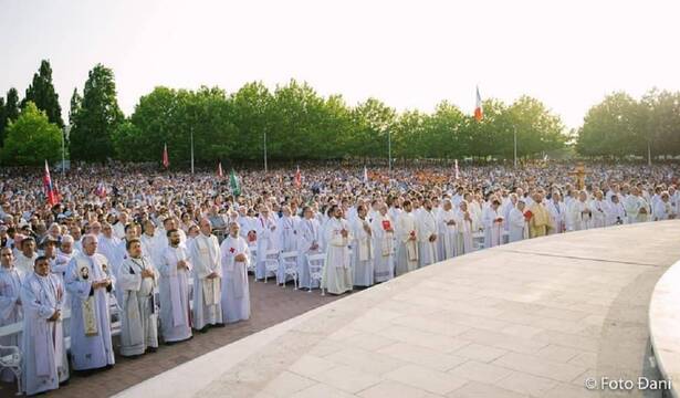 Tras una procesión de entrada de más de 20 minutos, dada la cantidad de sacerdotes, fray Miljenko, con la voz rota por la emoción y ante una explanada rebosante de peregrinos, dijo: “Queridos hermanos y hermanas; Queridos hijos de la Virgen: ¡Felicidades por estos 40 años!”.