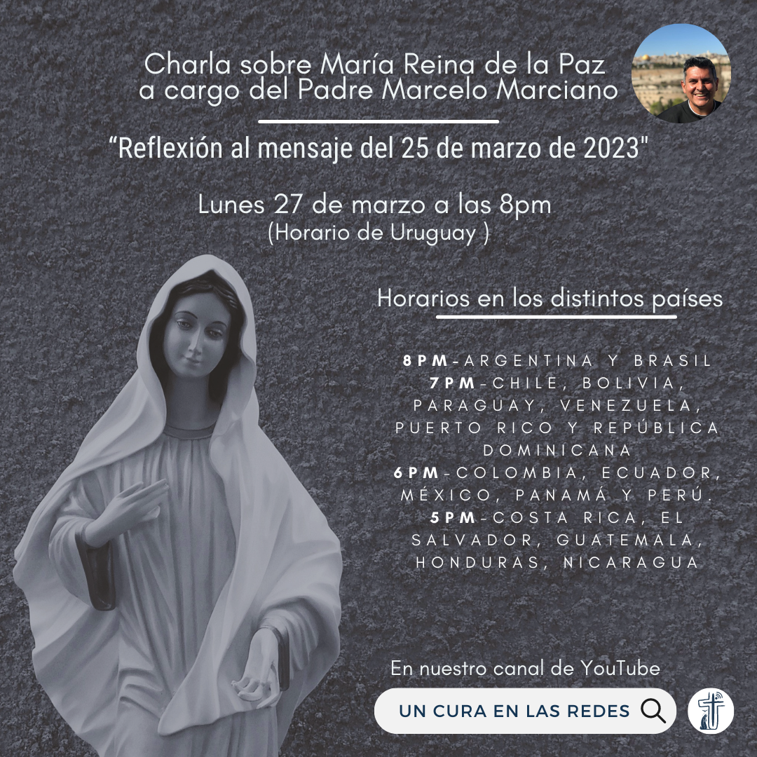 El lunes 27 de marzo a las 8pm de Uruguay el Padre Marcelo Marciano comentará a través de YouTube el mensaje dado por la Virgen el pasado 25 de marzo.