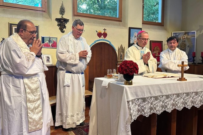 –El encuentro con el vidente Iván fue también muy entrañable. Él reza por los sacerdotes y toda la capilla estaba a rebosar de ellos. Significativamente me tocó rezar el cuarto misterio de los Misterios Gloriosos del Santo Rosario: la Transfiguración. Para mí muy significativo (en el lugar y en mi vida). Así fueron también las palabras de Iván, llenas de luz y de experiencia de Dios. Como los sacerdotes estamos muy presentes en esta experiencia de gracia, recibí esa llamada especial a dejarme transformar los ojos, para dejar que la Palabra trabajase por dentro. Pude vivir la Eucaristía en su plenitud de forma que me configurara con Cristo. Esto para mí, para los presbíteros que estaban presentes y los sacerdotes de mi diócesis, es fundamental: es contemplar la realidad cotidiana desde el interior transfigurado. Como dice San Pablo: “(La oración) ilumine los ojos de vuestro corazón para que comprendáis cuál es la esperanza a la que os llama” (Ef 1, 18).