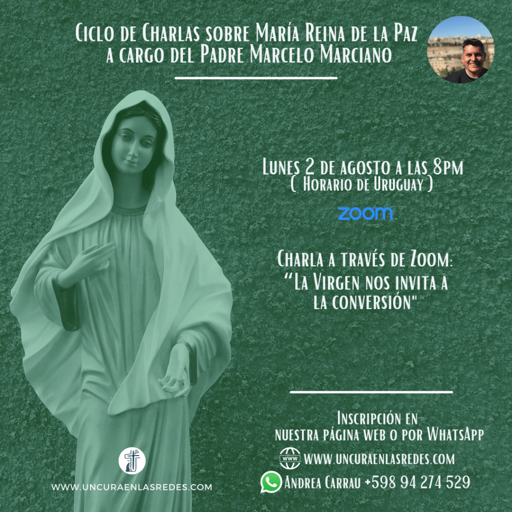 El próximo lunes 28 de junio comienza el Ciclo de charlas a través de Zoom sobre María Reina de la Paz a cargo del Padre Marcelo Marciano.