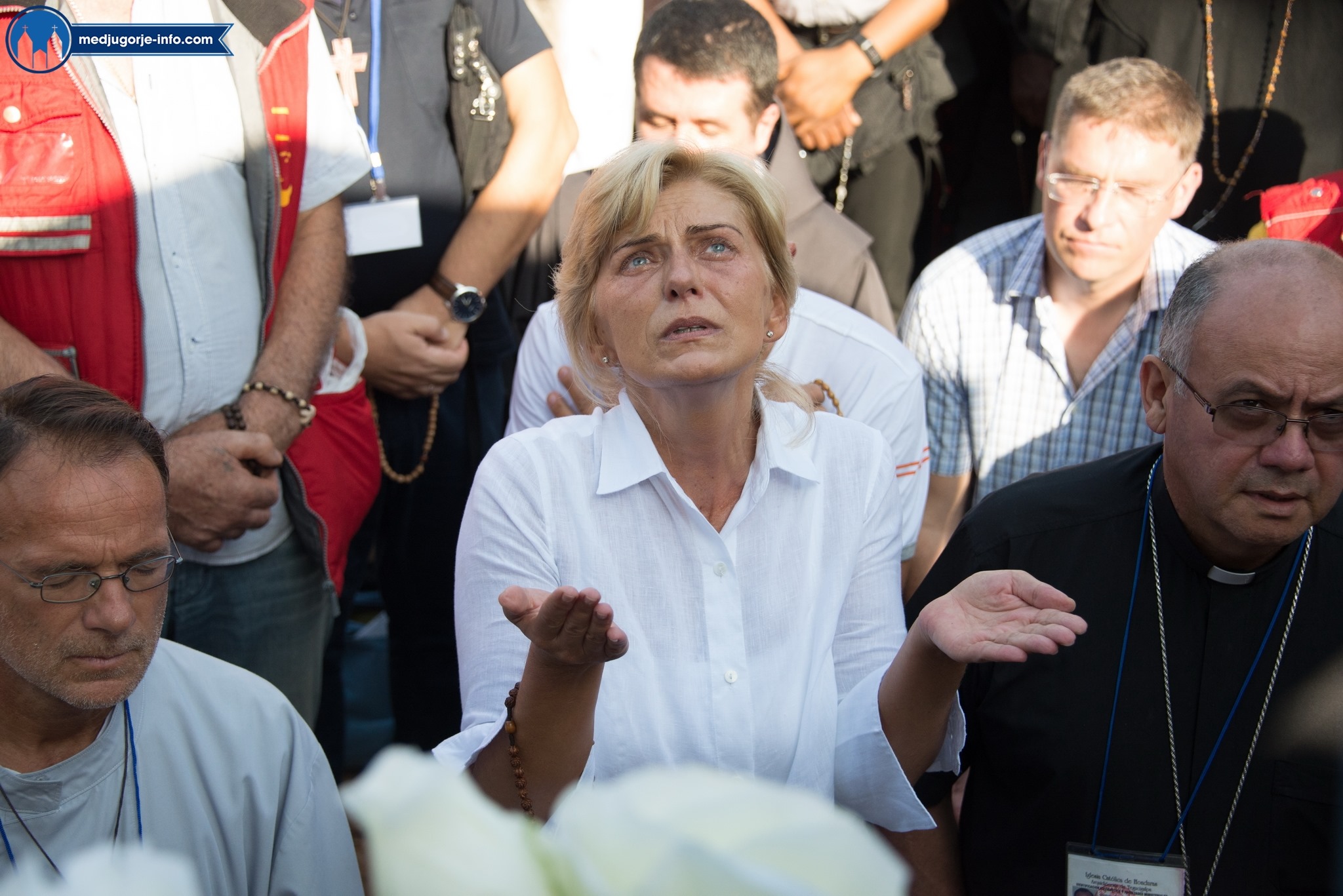 Marija: Muchas veces. Ya al inicio, en el grupo de oración, la Virgen nos pedía rezar el Rosario en familia. La Virgen dice que debemos decidirnos a testimoniar, es decir, si no tenemos experiencia de oración, no podemos testimoniar, pero si nos decidimos, entonces sí tendremos experiencia de oración, sobre todo, como ha dicho la Virgen esta tarde, en los momentos de dolor. Yo he visto muchas personas que han encontrado la fe en los momentos de dolor y sus vidas han cambiado. Al principio de las apariciones, nosotros sentíamos una felicidad inmensa, pero no sabíamos qué debíamos hacer para agradecer su presencia, así pues, rezábamos el Rosario que era la cosa más simple, más bella, más profunda ya que se contempla la vida de Jesús. Un cristiano mariano, es un cristiano más sensible, un cristiano positivo, un cristiano que tiene al lado a la Virgen, un cristiano que lleva a la Virgen en el corazón y en los pequeños gestos de la vida cotidiana.