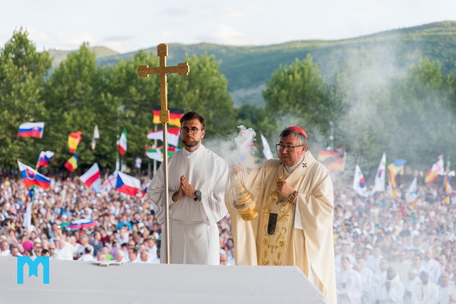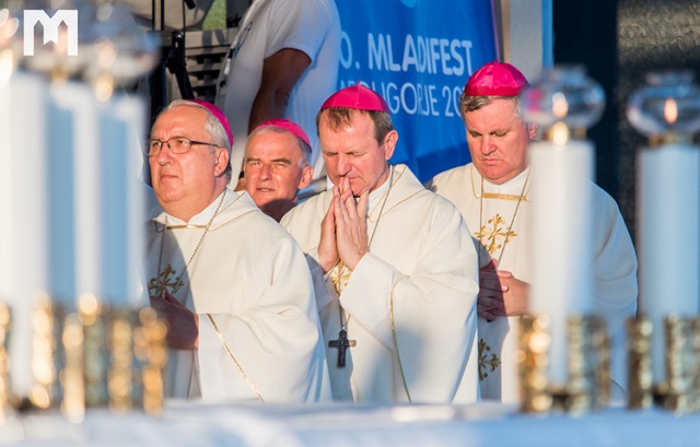 ¡Queridos hermanos y hermanas, queridos jóvenes! Como todos los años, no veo la hora de enviarles mis saludos por esta gran reunión juvenil. En los últimos años, nuestro Santo Padre ha dado señales paso a paso de que Medjugorje es un lugar bendecido donde la Madre de Dios, Nuestra Señora, está muy cerca de las personas y les envía mucha ayuda. Todos nosotros solo podemos agradecerle sinceramente – al Papa – su sabio cuidado pastoral lleno de amor. En la persona del arzobispo Hoser, envió a su representante permanente. En la inauguración del Mladifest llegó su vicario personal, el cardenal De Donatis. Todos estos signos muestran que la Iglesia reconoce con gratitud lo que tantas personas han vivido en Medjugorje durante décadas y los alienta a venir a este lugar de misericordia a pesar del calor del verano. Aquí es donde el paraíso está cerca de nosotros, aquí Nuestra Señora brinda tanto consuelo y conversión, aquí muchos de ustedes descubren la alegría de la confesión, el sacramento del perdón. Aquí experimentas amistad en la fe, aquí haces amigos, aquí muchos experimentan la sanación interior de las heridas de la vida. Espero con ansias venir a Medjugorje para el próximo Mladifest, si Dios quiere.
