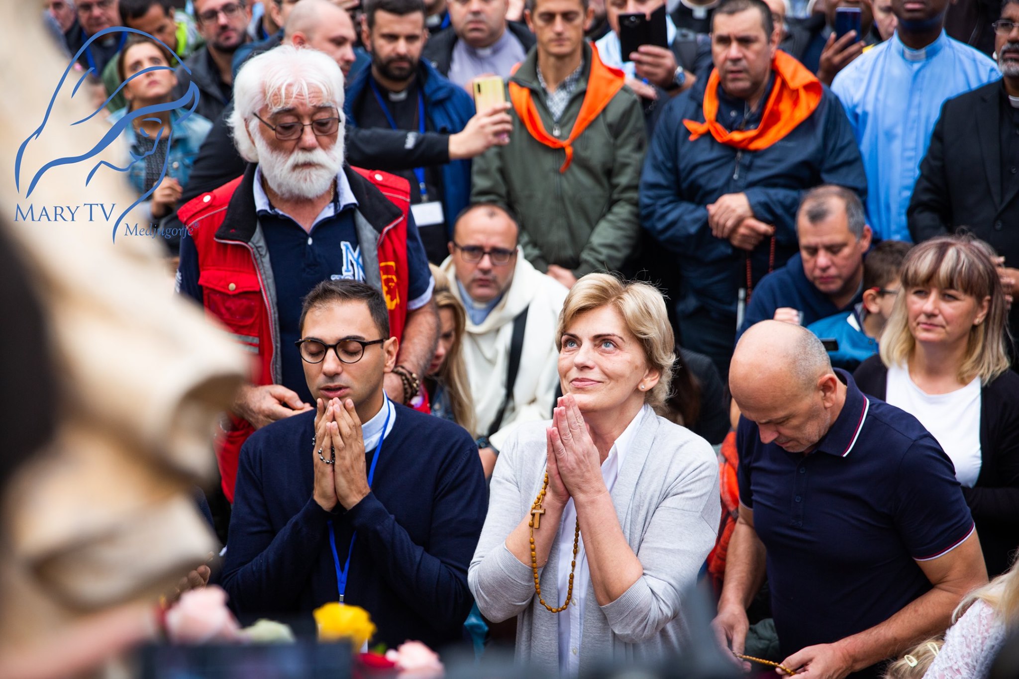 En segundo lugar, la Virgen María, que con su presencia mística y real, no imaginada, ha obrado millones de milagros en millones de corazones durante estos 38 años ya, como sucedió antes en otros lugares como Fátima o Lourdes. Pequeños milagros inexplicables en el corazón de las personas que, sin verla a ella, sin participar de las apariciones como lo hacen los videntes, sí que han vivido la transformación interior de la conversión, el don del encuentro personal que todo lo cambia con Cristo y con su Iglesia.