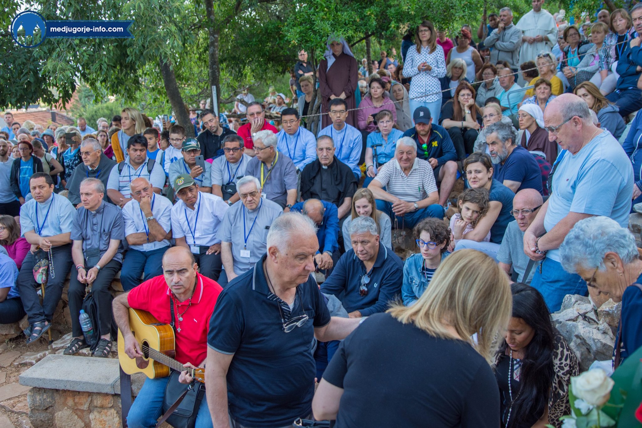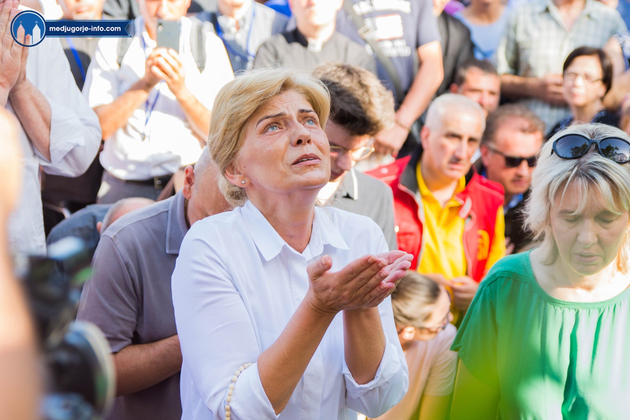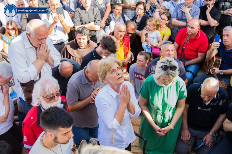 Marija: Ella dice: “El plan de salvación en vosotros y a través de vosotros.” La Virgen nos dice: “Convertíos y sed para otros (todos los que no creen, no oran, no adoran, los que están en pecado) el áncora de salvación. Con nuestros actos, nuestras palabras, nuestros ejemplos… podemos hacer el bien, pero también el mal. Estamos llamados a hacer el bien, a ser bendición, a ser la alegría de Dios para otros. Esta tarde he encontrado a un señor que vino a Medjugorje y me ha hablado de su experiencia. Es un hombre muy importante en el mundo del deporte, no diré su nombre, pero sí os digo que es un personaje muy conocido. Este señor me decía que había venido a Medjugorje y que ahora no podría vivir sin Medjugorje. Antes vivía solo pensando en sí mismo, ahora en cambio, en el primer lugar de su vida está Dios. Me gusta tanto ver a esas personas de una cierta edad que cuando vienen aquí redescubren a Dios y se les ve, no solo la fe, sino también la juventud espiritual en su corazón, en sus actos. Muchos, después de la conversión, dicen que deben recuperar todos esos años que habían estado alejados de Dios y lo dicen con mucho entusiasmo.