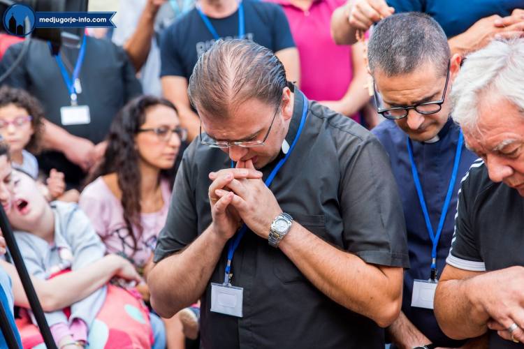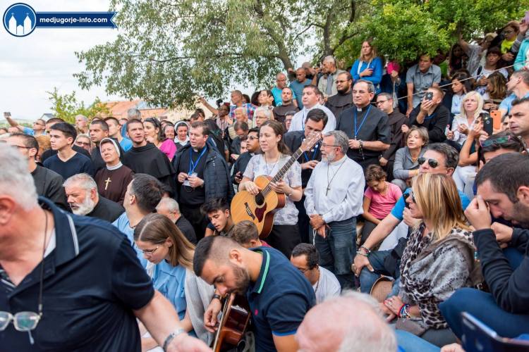 El jueves 2 de agosto, los jóvenes ya estaban despiertos a las 6 a.m. para rezar misterios gozosos en la Colina de las Apariciones. El programa del Festival continuó a las 9 a.m. en el Altar exterior con la oración de la mañana del P. Marinko Sakota, coordinador del Festival, y continuó con la catequesis dada por el P. Ante Vuckovic. En el resto de la mañana, los jóvenes tuvieron la oportunidad de escuchar los testimonios inspiradores de diferentes personas del mundo. Gottfried Prenner, el ingeniero de construcción y teólogo de Austria habló primero y luego hubo el testimonio de Rosa Pich, que tiene 18 hijos y de Oriol y Caty Vives que tienen 8 hijos. Ambas hermanas provienen de una familia que tuvo 16 hijos, 10 de ellos viven vidas consagradas como sacerdotes y monjas. La familia de Rosa Pich es la más numerosa de toda Europa.