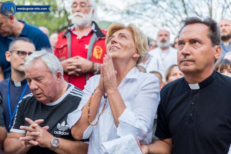 En la parte de la tarde del programa, desde las 4 pm, la famosa atleta croata, Blanka Vlasic, habló sobre su conversión y la experiencia de la fe. La parte central de este día fue también la Santa Misa vespertina celebrada por el P. Ante Vuckovic con 548 sacerdotes concelebrando. Después de la Santa Misa, siguió la veneración de la Santa Cruz y el Servicio de la Luz. También este día, en la fiesta de Nuestra Señora de los Ángeles, muchos sacerdotes estaban disponibles para el sacramento de la reconciliación.