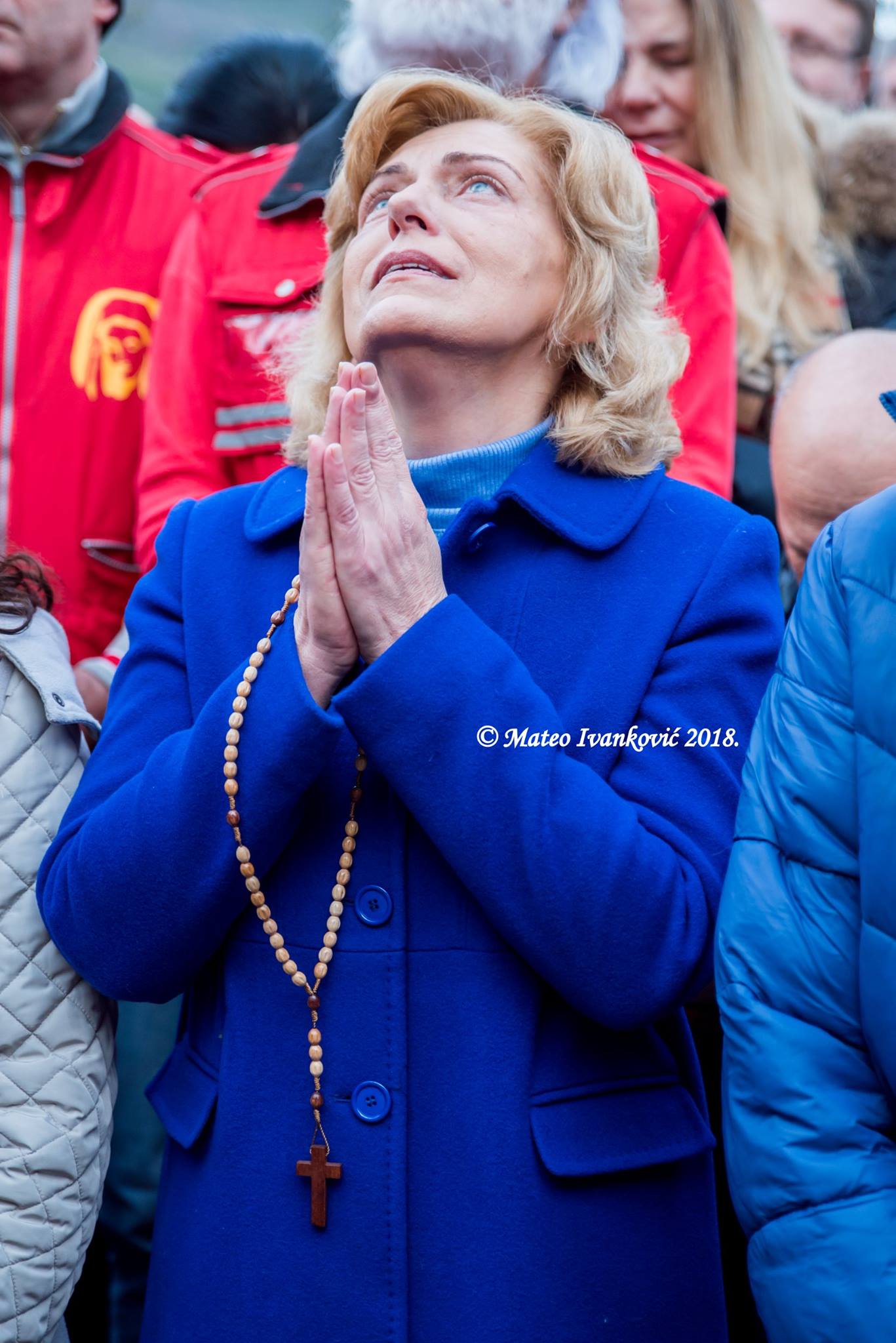 Marija: El Niño Jesús es un niño muy pequeño y está dentro del gran velo que lleva la Virgen. Es un niño muy pequeño que no tiene ninguna particularidad. Es una aparición muy sobria, muy bella con las palabras de la Virgen y su oración, que como cada Navidad ruega especialmente por la paz y por todos los presentes y ha dado el mensaje que acabamos de mencionar.