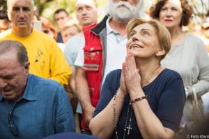 Marija: Sí, la Virgen insiste en que sin Dios no tenemos ni futuro, ni vida eterna. Por este motivo, nos llama continuamente a la conversión. El momento de la conversión es ahora, no mañana o ayer. Nos pide que sigamos el camino que Ella ha empezado aquí. Justo en estos días, en una homilía, he escuchado que en un mensaje, la Virgen decía que lo que había empezado en Fátima, lo quería continuar y terminar aquí en Medjugorje. Que estamos en el centenario de las apariciones de Fátima y todos sabemos que no era fácil en aquel tiempo, pero tampoco lo es ahora. Actualmente, hay mucha indiferencia. Hace algunos días, me encontraba con una persona cuando esta persona me presentó a otra diciendo que yo era Marija, la vidente y esta señora con tono indiferente dijo: “No me interesa, no soy practicante ni creyente por lo tanto, no me interesa”. Muchas veces encontramos gente que vive muy alejada. Pensar que esa persona estaba tan entusiasmada en presentarme para decirle que yo había tenido esa gracia. Pero ella insistió en que no le interesaba, que tenía esa libertad y que no creía. ¿Qué podemos hacer en estos casos? Solo podemos rezar. Yo le sonreí y dije: “Que Dios te bendiga, te muestre su rostro y te convierta”. No podemos hacer otra cosa. Podemos bendecir, rezar y testimoniar aunque solo sea con una sonrisa. En esos momentos, te vienen ganas de zarandearla y decirle: “Querida mía, si no tienes a Dios, si no tienes fe, si no tienes a la Virgen, si no tienes a los santos, estás perdida en este temporal de la vida. No podemos ir contra la libertad de los demás, pero podemos rezar, podemos bendecir. Ayer llegó Mario, el marido de Vicka, cuando después de la aparición, queríamos bendecir a todas las personas y los objetos, pero al sacerdote le faltaba el agua bendita y a mí se me había olvidado. Mario llevaba una chaqueta grande y tranquilamente sacó de uno de sus bolsillos el agua bendita y yo riéndome le pregunteé “Mario, ¿qué llevas en los bolsillos?” y él me contestó: “Agua bendita y rosario”. Así nos armamos con el rosario y la oración. Muchas personas maldicen, pero nosotros queremos bendecir con nuestra vida y con nuestro ejemplo.