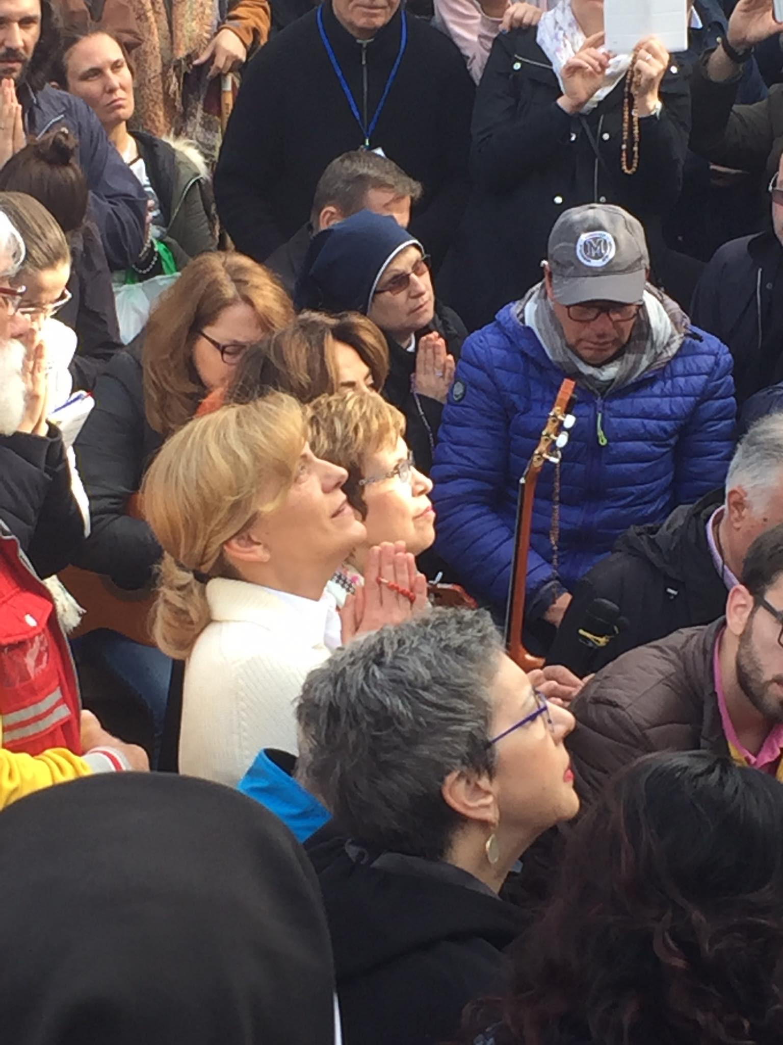 Marija: Exactamente. Esto es lo que se vivía en las primeras peregrinaciones, como contigo, que cuando venías con nosotros y subíamos a la colina y cantábamos: “También Italia se convertirá con la Kralitza Mira” (con la Reina de la Paz). Porque yo estoy segura que hoy en día Italia, el pueblo, la gente, las familias viven en una total confusión. Si no nos aferramos a Dios, si no nos aferramos a la Virgen, si no nos aferramos a la oración, no habrá posibilidad de salir de esta crisis, de esta confusión, de estas ideologías que está viviendo el pueblo italiano y todo el mundo. De manera especial cuando estamos abriendo de par en par la puerta a la eutanasia. Con la nueva ley, estamos diciendo que si uno no quiere vivir, puede quitarse la vida. Como si una persona anciana fuera un peso para la sociedad. En cambio, la Virgen dice que somos importantes. Ella está con nosotros.