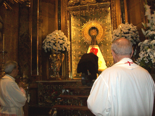 De vuelta a Zaragoza: petición cumplida Durante las vacaciones de agosto de 2011 fuimos unos días a los Pirineos y de regreso, al pasar por Zaragoza, me propuso parar. Después de comer le pedí que me acompañase a besar el Pilar. Cuando nos tocó el turno, me arrodillé, besé el Pilar -que olía a rosas- y me santigüe. Detrás de mí, ella hizo lo mismo. Andábamos hacia la salida de la basílica cuando me acordé de las palabras que dije en diciembre mientras ella estaba en una reunión de trabajo: “Si ella es la mujer de mi vida, por favor, haz que volvamos juntos a besar Tú pilar”. En ese momento rompí a llorar de emoción y gratitud. La Virgen María me estaba hablando con hechos.