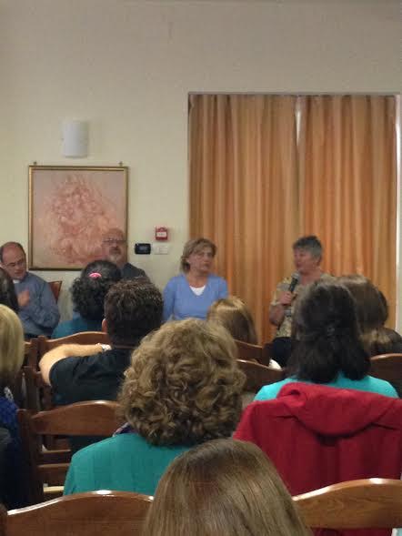 Ella tuvo a su lado durante todo el encuentro al Padre Gustavo Jamut, y a otro sacerdote argentino, e hizo varias veces referencias a la importancia de los sacerdotes como guías espirituales, como pastores de la Iglesia que también deben ayudarnos a llevar las cruces de nuestras vidas.
