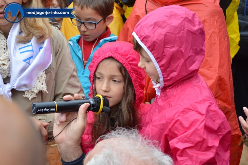 „Draga djeco! I danas sam s vama i s radošću vas sve pozivam: molite i vjerujte u snagu molitve. Otvorite vaša srca, dječice, da vas Bog ispuni svojom ljubavlju i vi ćete biti radost drugima. Vaše svjedočenje bit će jako i sve što činite bit će isprepleteno Božjom nježnošću. Ja sam s vama i molim za vas i vaše obraćenje, sve dok Boga ne stavite na prvo mjesto. Hvala vam što ste se odazvali mome pozivu.“