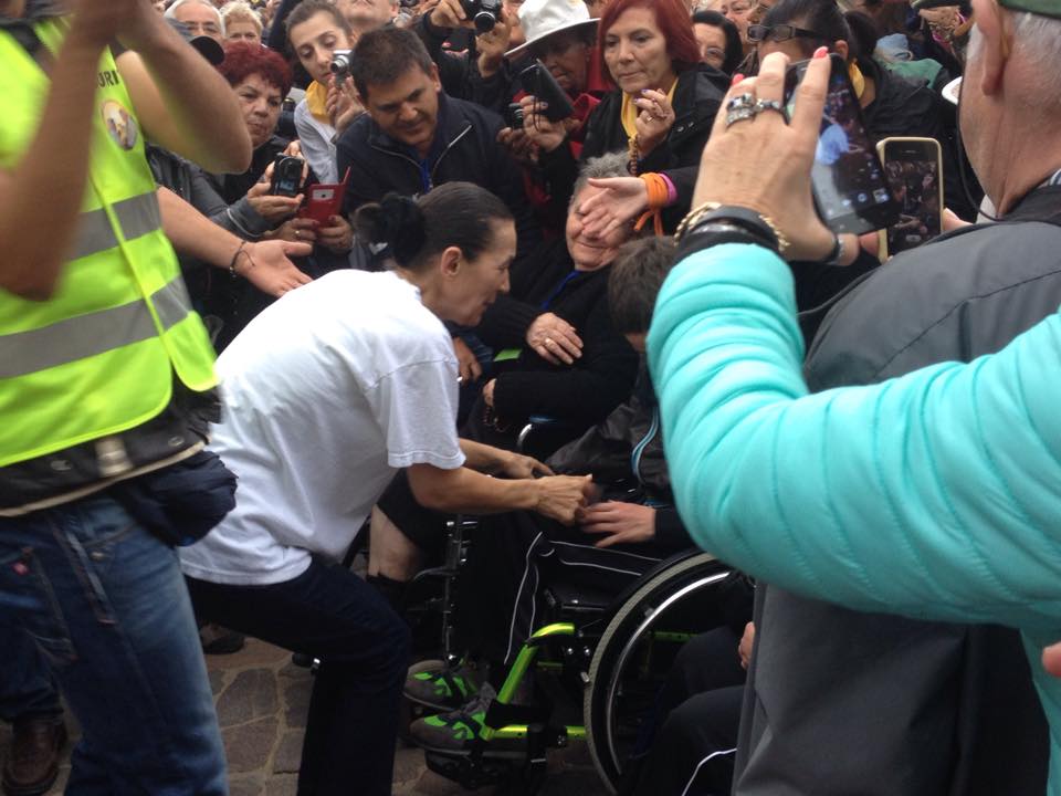 Vicka es siempre generosa con los peregrinos, les regala una enorme sonrisa, reza junto a ellos y les transmite el gran amor que tiene la Gospa por cada uno de sus hijos.