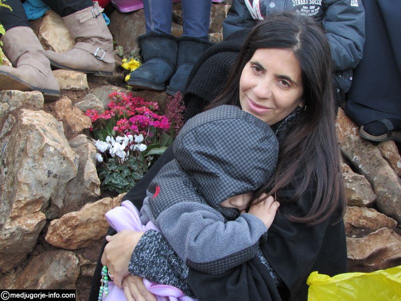Aparación de la Virgen a Mirjana en Medjugorje el 2 de octubre de 2014 - 3“Queridos hijos, con amor materno les ruego: ámense los unos a los otros. Que en sus corazones esté siempre, como mi Hijo lo ha querido desde el principio: en el primer lugar, el amor hacia el Padre Celestial y hacia su prójimo, por encima de todo lo terrenal. Queridos hijos míos, ¿acaso no reconocen los signos de los  tiempos? ¿Acaso no se dan cuenta que todo eso que está en torno a ustedes —lo que está sucediendo—, es porque no hay amor? Comprendan que la salvación está en los verdaderos valores. Acepten el poder del Padre Celestial, ámenlo y respétenlo. Encamínense y sigan los pasos de mi Hijo. Ustedes, hijos míos, apóstoles míos queridos, siempre se reúnen de nuevo en torno a mí, porque están sedientos. Están sedientos de paz, de amor y de felicidad. Beban de mis manos. Mis manos les ofrecen a mi Hijo, que es manantial de agua pura. El reavivará su fe y purificará sus corazones, porque mi Hijo ama los corazones puros y los corazones puros aman a mi Hijo. Solo los corazones puros son humildes y tienen una fe pura. Pido de ustedes esos corazones. Hijos míos, mi Hijo me dijo que yo era la Madre de todo el mundo. A ustedes, que me aceptan como tal, les pido que me ayuden con su vida, oración y sacrificio, para que todos mis hijos me acepten como Madre, para que yo los pueda conducir al manantial de agua pura. Les doy las gracias. Queridos hijos míos, mientras sus pastores, con sus manos benditas, les ofrecen el Cuerpo de mi Hijo, den gracias siempre en su corazón a mi Hijo por su Sacrificio y por los pastores que lo dan a ustedes siempre de nuevo.”