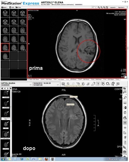 Gracias a Dios, los resultados de las resonancias magnéticas realizadas constantemente cada año en Milán fueron similares, sin modificaciones sustanciales en el tiempo. La penúltima resonancia magnética se remonta a 5 años atrás, exactamente el 21 de abril de 2007. Desde entonces, yo siempre he aplazado los controles sucesivos por miedo a que se fueran modificando en el tiempo.
