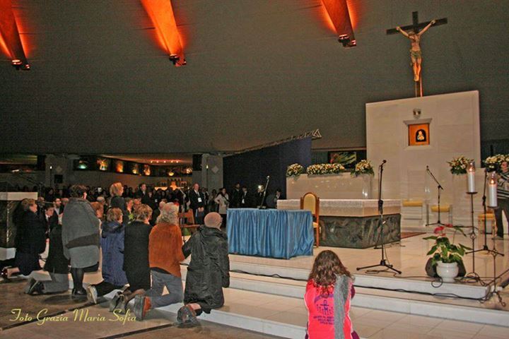 Participaron también en el programa vespertino de oración celebrado en el exterior, así como en la Adoración del Santísimo, traducido a varios idiomas. Algunos compartieron sus impresiones con nosotros: «Había muchos peregrinos alrededor de la Iglesia, y casi todos los sitios estaban ocupados; pero incluso en el silencio se podía oír la oración y el susurro de la música, un verdadero alimento y descanso para nuestras almas. Una vez finalizada la Adoración al Santísimo nos dirigimos todos a la estatua de Nuestra Señora y le dimos las gracias a nuestra querida Madre por la Gracia de poder estar aquí y por todos los regalos que nos ha hecho.»
