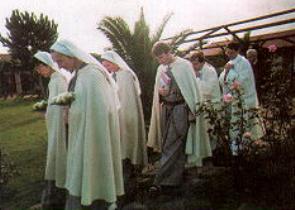 Era el mes de junio. Andrée me hizo salir al jardín bien florecido de las Hermanas de la Asunción. Allí había un banco. Al ver mi agotamiento, me hizo sentar, pero ella permaneció de pie con sus acólitos que me rodeaban. Me encontraba en la situación más impensable que pudiera darse, sobre todo porque se pusieron a cantar en lenguas desde el comienzo. ¡Me preguntaba en qué manicomio había ido a dar! Ella dirigió las operaciones con toda maestría y planteó la cuestión de la confianza que iba a ser determinante en caso de obtener la victoria: