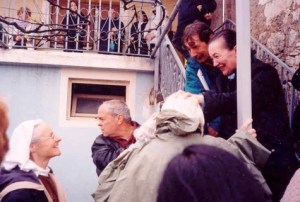 5- ¡Ella pronunció mi nombre! En febrero 1991 debía viajar con Vicka a Paris para una corta misión en Francia. Tenía que pasar a buscarla por su casa por la mañana y le dije el día anterior: “Mañana vendré a las 4 de la mañana con un taxi, tienes que estar lista” Llego a su casa a las cuatro y Vicka sube al taxi. Durante el trayecto, le pregunté cómo podríamos organizarnos en París para que ella tuviera un lugar donde recibir la aparición diaria de la Virgen. Pero ella me respondió: “No hace falta, ¡ya se me apareció esta mañana! Sabes, cuando viajo ella acude antes de mi partida, esto sucede muy frecuentemente. Por eso ayer me dijo: ‘Como sor Emmanuel vendrá a buscarte mañana a las 4, me apareceré un poco antes de su llegada…’ Me sorprendí mucho y le pregunté: “¿Cómo? ¿La Virgen pronunció mi nombre?” “Sí, -me respondió Vicka como si fuera lo más natural del mundo- es lógico, ¡siempre hace esto!” Pero para mí aquello fue una gracia inolvidable… ¡La Madre de Dios decidió su horario de aparición en función de la hora que yo había señalado y pronunció mi nombre! ¡Somos demasiado inconscientes de la extrema proximidad de Dios y de su Madre en los más mínimos detalles de nuestra vida cotidiana!