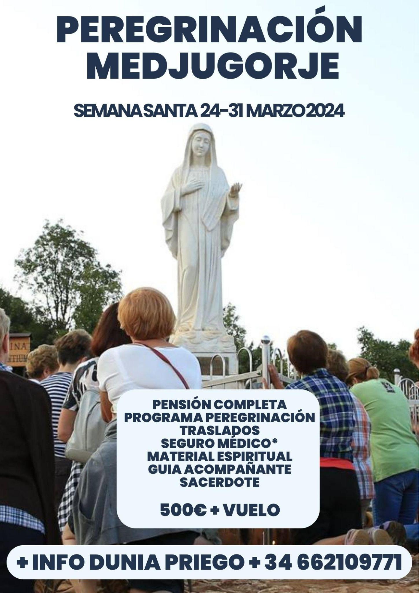 PS 7 – ¿Estás pensando en peregrinar a Medjugorje? Hay distintas fechas y opciones para responder a la invitación de la Gospa de visitarla en el lugar donde se está apareciendo, entre otras en Semana Santa o en abril 2024. Info: Dunia Priego + 34 66 210 9771. Consultar más fechas disponibles con la Organizadora.