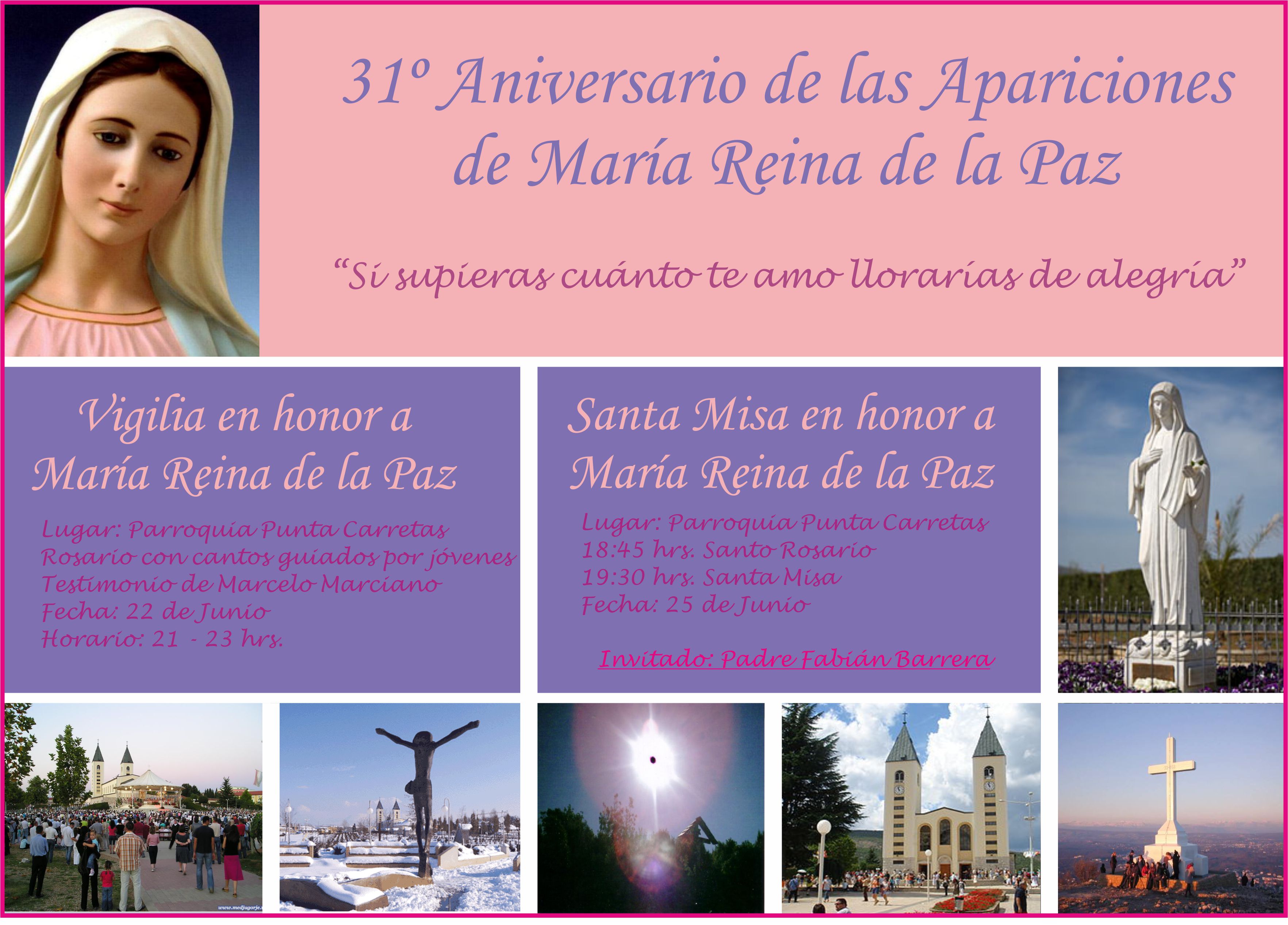 Los invitamos a participar del 31º Aniversario de las apariciones de la Virgen en Medjugorje.
