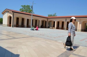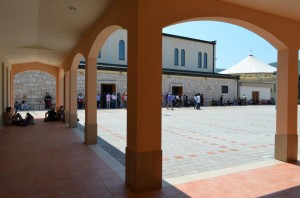Foto 1: Arcos romanos proporcionan sombra a los penitentes que utilizan los nuevos confesionarios de Medjugorje. Foto: Marco Piagentini.