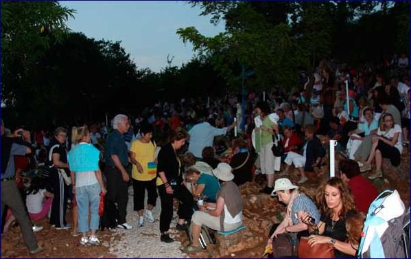 Los primeros peregrinos llegaron cinco horas antes de que el vidente Ivan Dragicevic se encontrara con su grupo de oración y tuviera su primera aparición pública en Medjugorje esta temporada el viernes. A pesar de que la tarde era fría antes de la aparición a las 10 pm, la gente llenaba el área alrededor de la Cruz Azul.